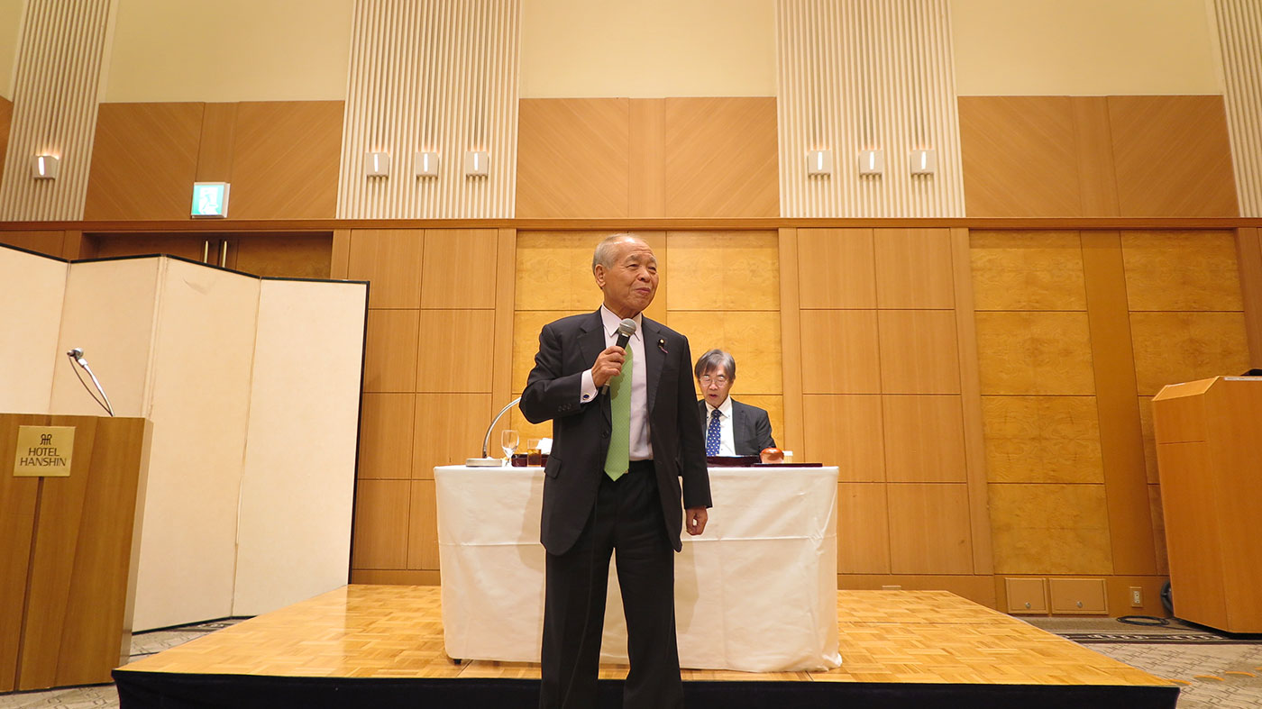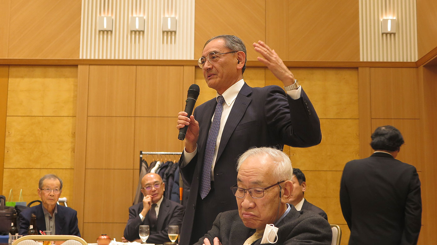 ご高話から出席者との対話・質疑迄、約2時間、立ちっぱなしで、しかも多くの質問に、出席者の席に近寄りながら、参加者の顔を直視してしゃべる。まるでご自分の後援会での立ち振る舞いの様でした。当会合で、こんなスタイルでしゃべる講師は、これまでおられませんでした。